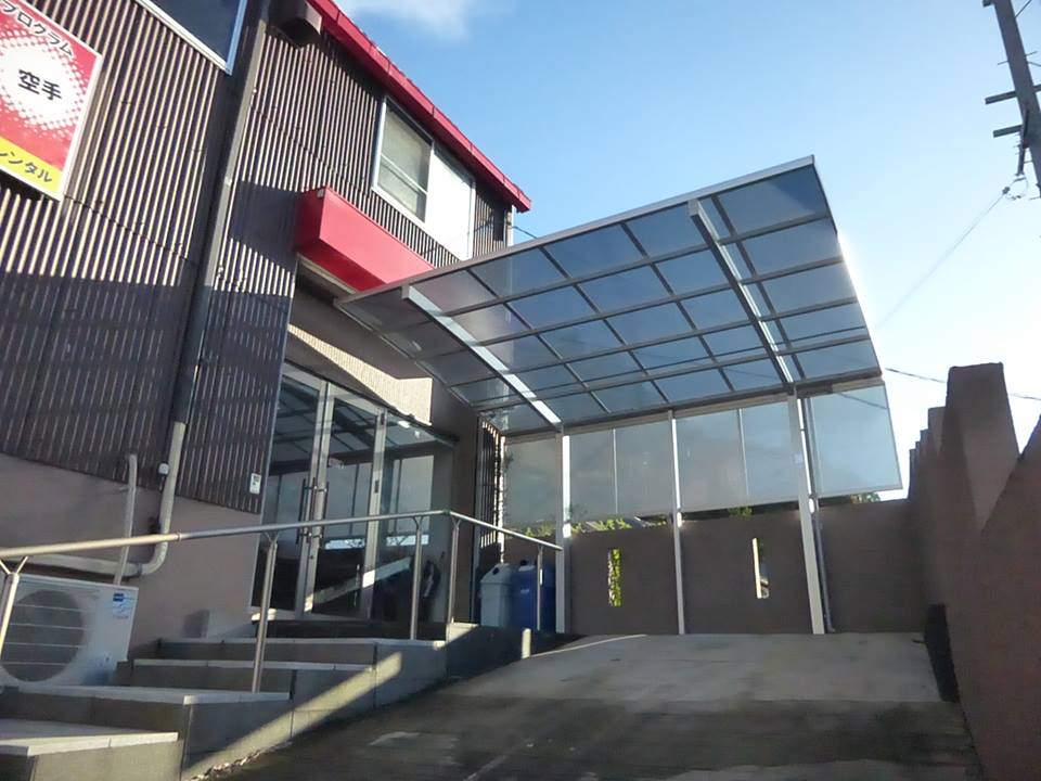 これで、雨の日、強い日射しも安心!入口にカーポートを設置しました。